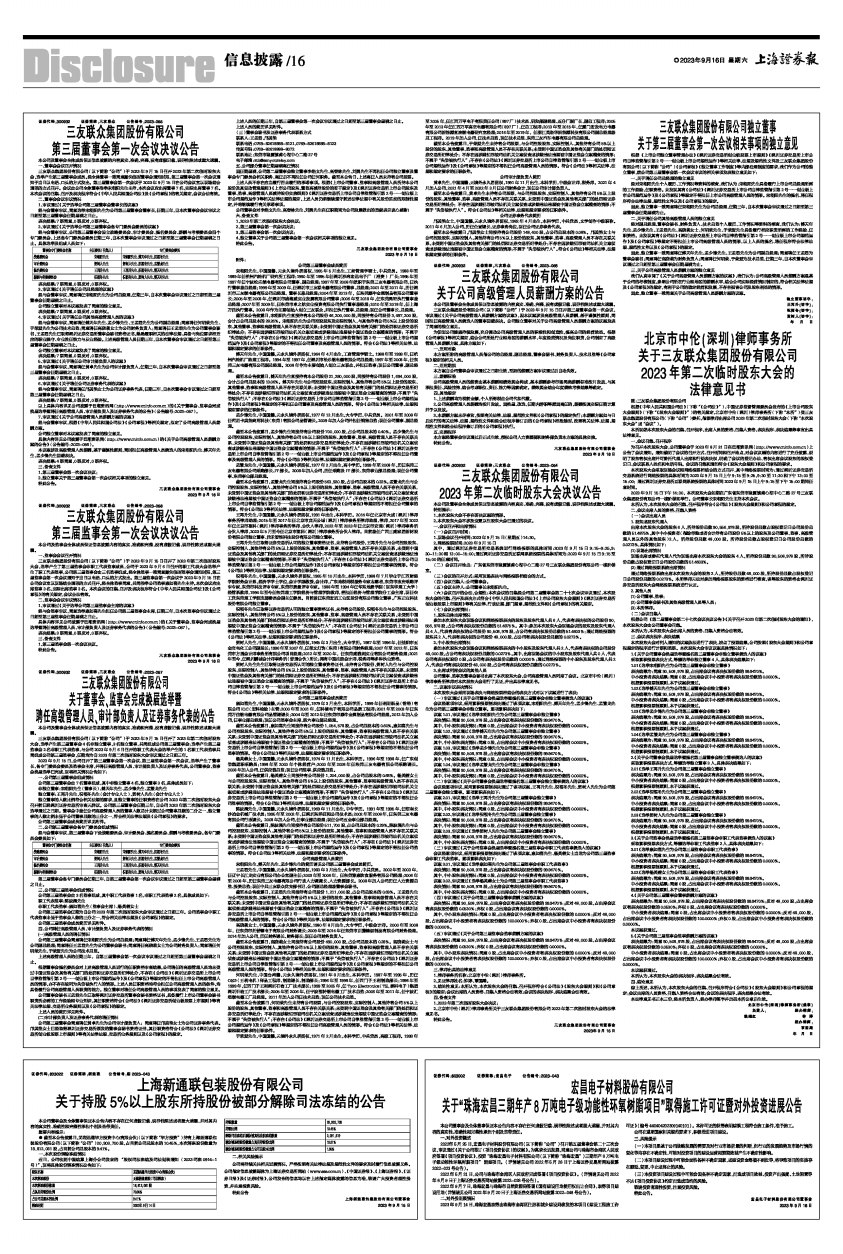 2、北京市中伦(深圳)律师事务所关于三友联众集团股份有限公司2023年第二次临时股东大会的法律意见书。