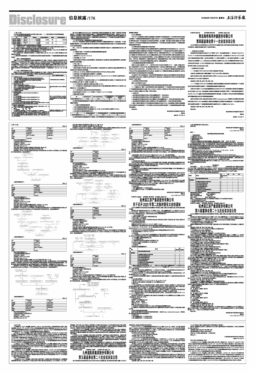 杭州滨江房产集团股份有限公司(以下简称“公司”)第六届董事会第二十九次会议通知于2023年10月16日以专人送达、传真形式发出,会议于2023年10月26日以通讯方式召开,应参加表决董事6人,实际参加表决董事6人。本次会议召开程序符合《公司法》和《公司章程》的规定。