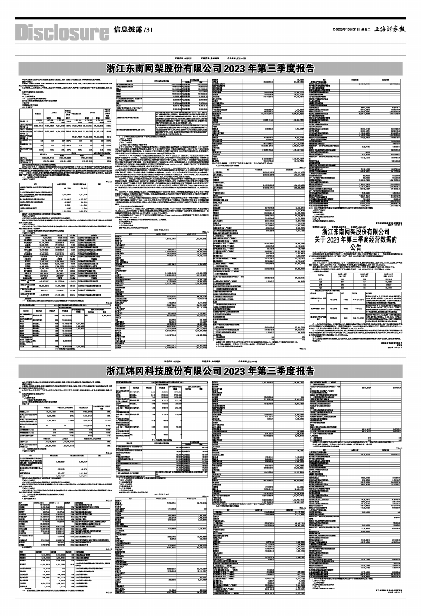 根据《深圳证券交易所股票上市规则》、《深圳证券交易所上市公司自律监管指引第3号一一行业信息披露》等相关规定,浙江东南网架股份有限公司(以下简称“公司”)现将2023年第三季度主要经营情况披露如下: