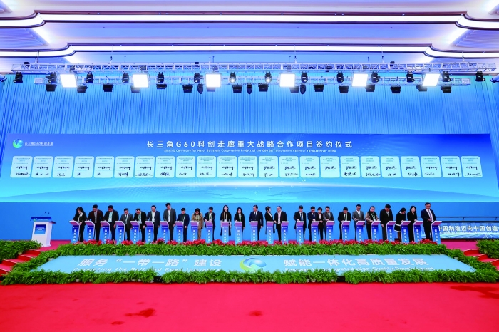 11月8日,在第六届中国国际进口博览会2023长三角G60科创走廊高质量发展要素对接大会上,上海证券报社等33家机构与长三角G60科创走廊联席会议办公室达成战略合作,推动高质量发展要素对接,助力长三角一体化发展。