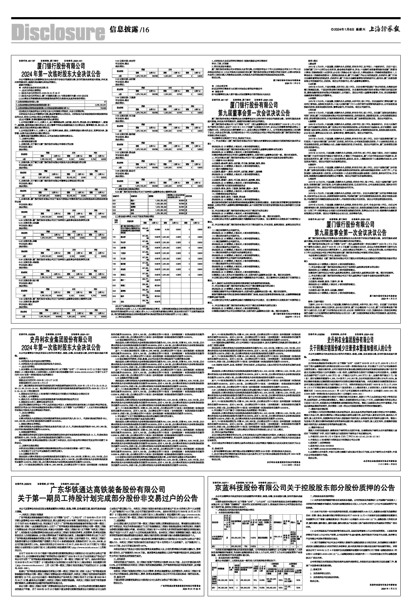 厦门银行股份有限公司(以下简称“公司”)第九届监事会第一次会议通知于2024年1月5日以电子邮件方式发出,会议于2024年1月5日在厦门以现场方式召开,会议由全体监事推举王建平先生召集并主持。本次会议应出席的监事6人,亲自出席会议的监事6人。本次会议的召集、召开程序符合《中华人民共和国公司法》等法律法规和《厦门银行股份有限公司章程》的有关规定。