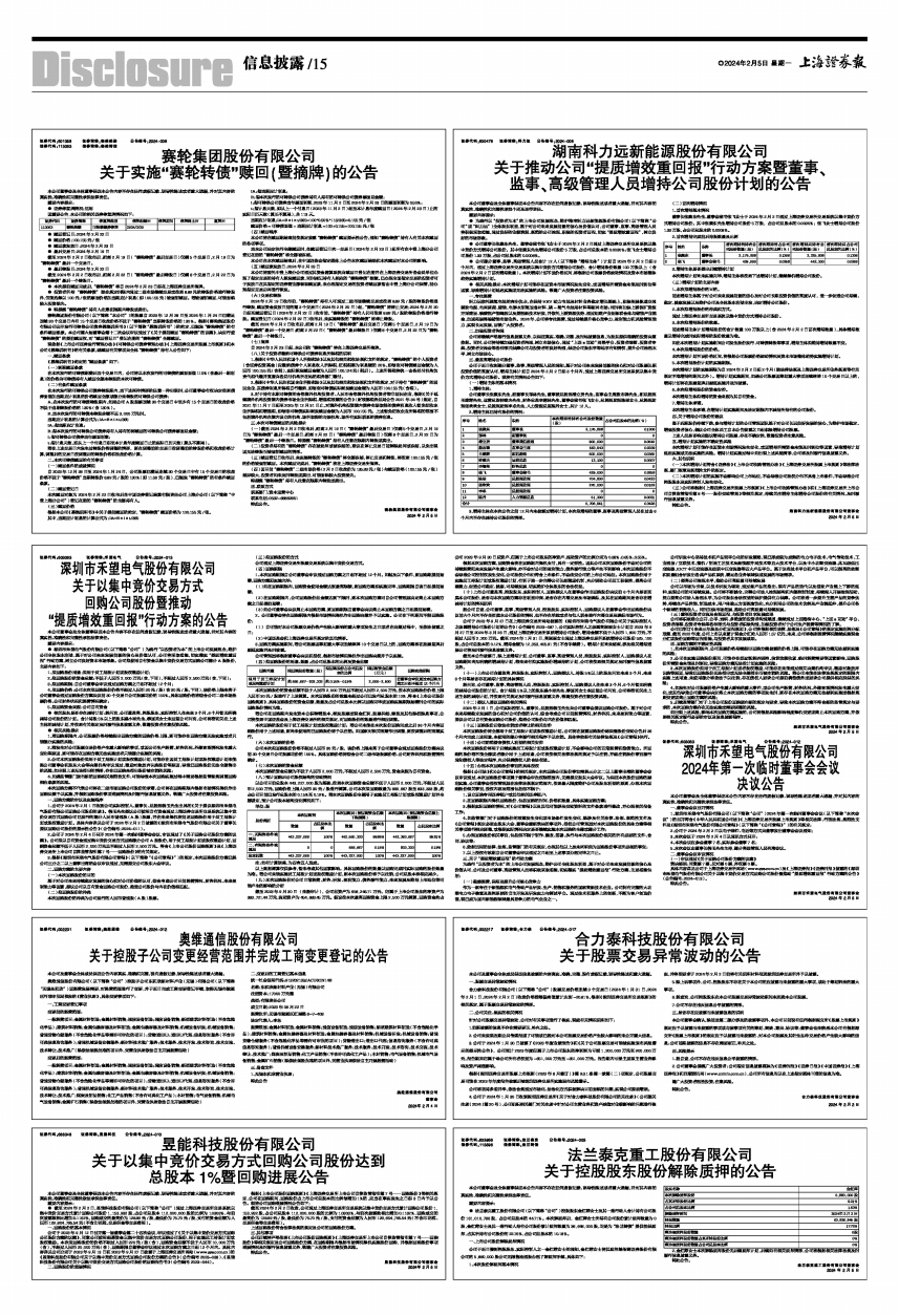 2、公司于2024年2月4日召开2024年第一次临时董事会会议,审议通过了《关于回购公司股份方案的议案》。公司拟以自有资金通过集中竞价交易方式回购部分公司A股股份,用于员工持股计划或股权激励计划,回购资金总额不低于人民币2,000万元且不超过人民币2,500万元。符合《上市公司股份回购规则》及《上海证券交易所上市公司自律监管指引第7号一一回购股份》的有关规定。