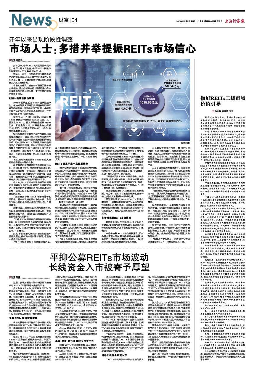 随着REITs市场持续调整,业内期盼引入更多长期资金入市,以充分发挥“稳定器”和“压舱石”作用。