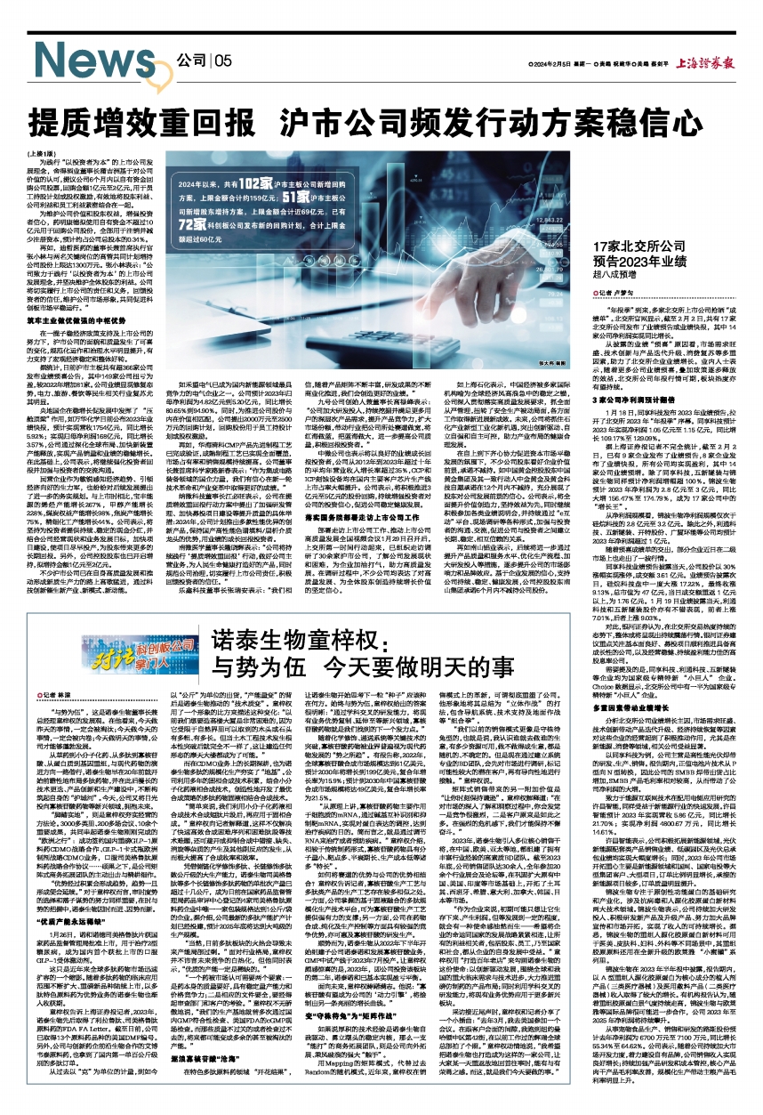 据上海证券报记者不完全统计,截至2月2日,已有9家企业发布了业绩预告,8家企业发布了业绩快报,所有公司均实现盈利,其中14家公司业绩预增。除了同享科技,五新隧装与锦波生物同样预计净利润增幅超100%。锦波生物预计2023年净利润为2.8亿元至3亿元,同比大增156.47%至174.79%,成为17家公司中的“增长王”。