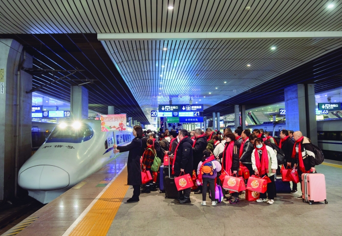 2月22日,外出务工人员在成都东站准备乘坐D1805次列车前往广州南站。当日,600多名四川籍务工人员分别从成都东站、绵阳站出发,乘坐动车前往广州,返岗就业。据悉,此次务工专列由地方政府出资承担,供务工人员免费乘坐。新华社图