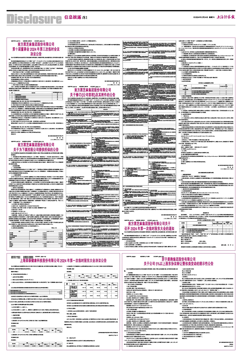 南方黑芝麻集团股份有限公司(以下简称“公司”)于2024年2月23日召开第十届董事会2024年第三次临时会议,审议并通过了《关于修订〈公司章程〉及其附件的议案》,董事会根据《公司法》《证券法》《上市公司章程指引》《上市公司独立董事管理办法》《深圳证券交易所上市公司自律监管指引第1号一一主板上市公司规范运作》等相关法律法规的规定,结合公司实际情况,拟对《南方黑芝麻集团股份有限公司章程》(以下简称“《公司章程》”)及其附件相应部分条款进行修订,现将相关情况公告如下: