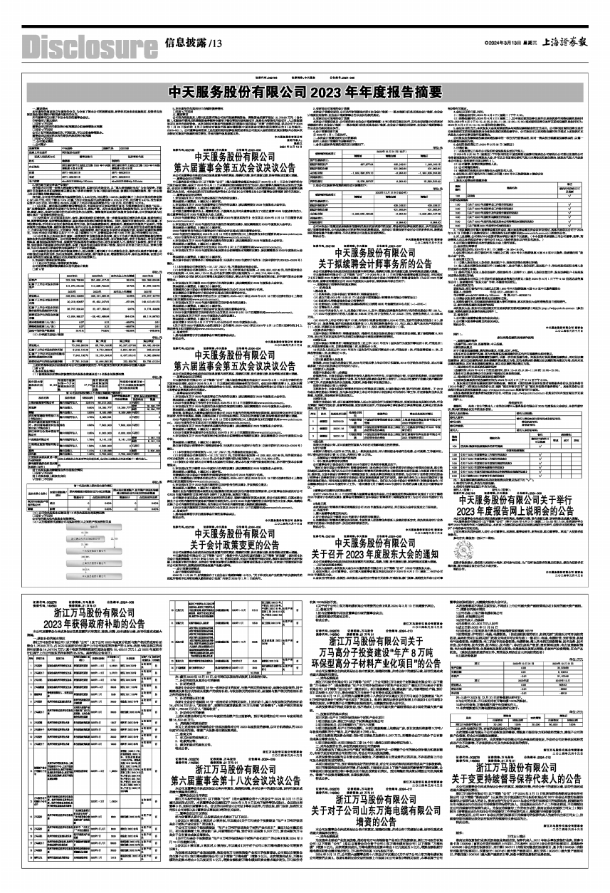 《关于万马高分子投资建设“年产8万吨环保型高分子材料产业化项目”的公告》详见2024年3月13日巨潮资讯网。