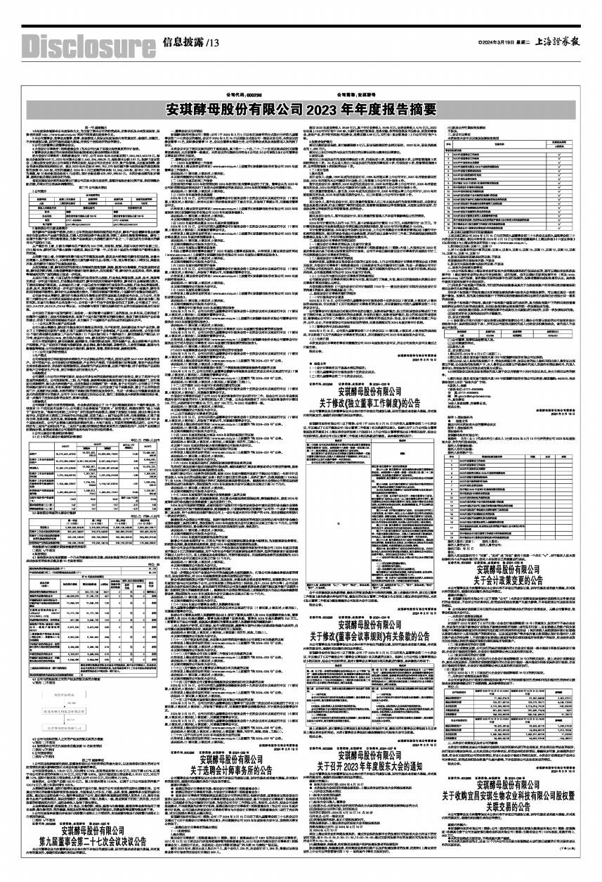 证券代码:600298 证券简称:安琪酵母 临 2024-033号
