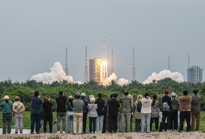 3月20日8时31分,探月工程四期鹊桥二号中继星由长征八号遥三运载火箭在中国文昌航天发射场成功发射升空。长征八号遥三运载火箭飞行24分钟后,星箭分离,将鹊桥二号中继星直接送入近地点高度200公里、远地点高度42万公里的预定地月转移轨道,中继星太阳翼和中继通信天线相继正常展开,发射任务取得圆满成功。新华社图
