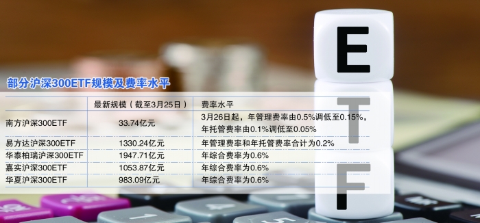 3月26日,南方基金公告称,为更好地满足广大投资者的投资理财需求,降低投资者的理财成本,根据有关法律法规及基金合同的规定,南方基金决定自3月26日起,调低旗下南方沪深300ETF的管理费率及托管费率。具体而言,基金的管理费年费率由0.5%调低至0.15%,托管费年费率由0.1%调低至0.05%。