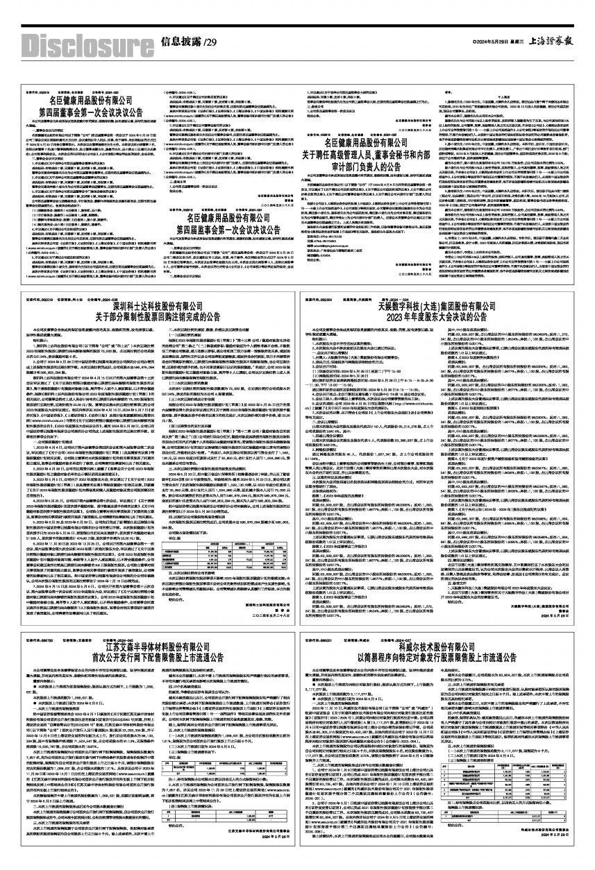 2、公司于2024年5月28日在中国证券登记结算有限责任公司深圳分公司办理完成上述限制性股票的回购注销手续。本次回购注销完成后,公司总股本由586,876,094股减少至586,803,094股。
