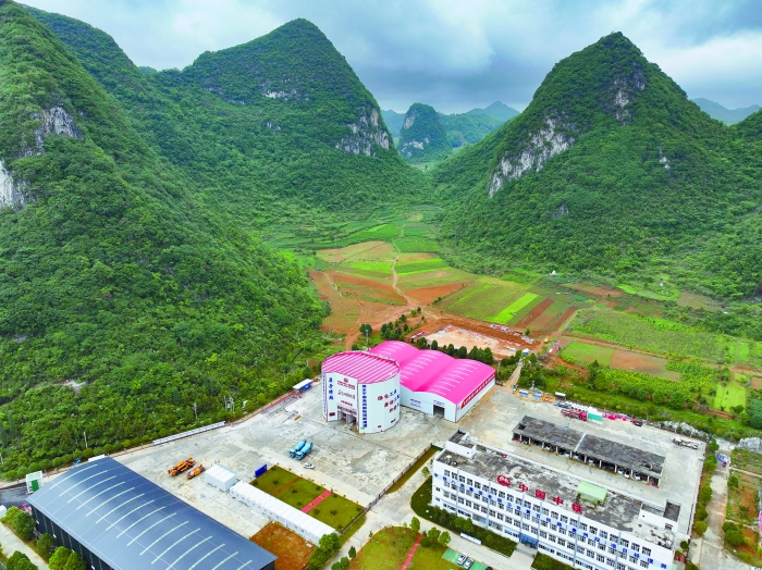 在贵州省紫云县,一处黄百铁路拌和站在生产建设所需混凝土。近日,贵州黄桶至广西百色铁路(简称黄百铁路)贵州段全面进入施工阶段。黄百铁路全长约315公里,设计时速160公里,预计于2028年建成通车。项目建成后,将进一步完善西部陆海新通道布局,构建我国西部地区通江达海便捷大通道。新华社 图