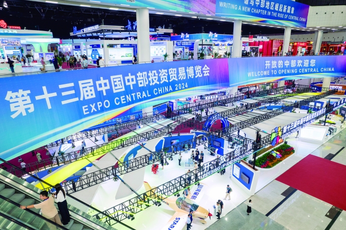 5月31日拍摄的第十三届中国中部投资贸易博览会现场。当日,第十三届中国中部投资贸易博览会在湖南长沙举行,将持续到6月2日。本届博览会以“开放创新 中部崛起”为主题,安排了4场重大活动、20场专题活动及实地考察活动,吸引了来自32个国家和地区的1052家企业参展,200多家跨国公司参会。新华社图