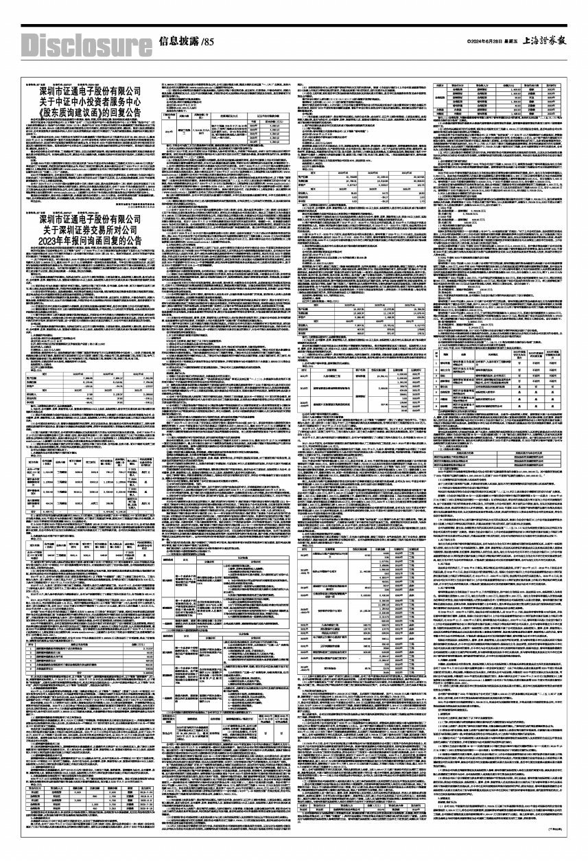 深圳市证通电子股份有限公司(以下简称“公司”)于2024年5月20日收到深圳证券交易所下发的《关于对深圳市证通电子股份有限公司2023年年报的问询函》(公司部年报问询函〔2024〕第191号)。收到问询函后,公司对问询函中涉及的问题进行了审慎核查,现回复如下: