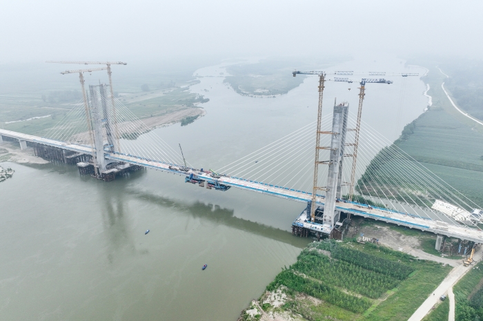 7月11日,沪渝蓉高铁钟祥汉江特大桥顺利合龙。当日,中铁十一局承建的沪渝蓉高铁钟祥汉江特大桥顺利合龙,大桥实现全线贯通,为沪渝蓉高铁武宜段全线如期建成通车奠定了坚实基础。钟祥汉江特大桥主桥位于湖北荆门钟祥市境内,全长547.5米,设计主跨270米,以斜拉桥形式跨越汉江航道。新华社图