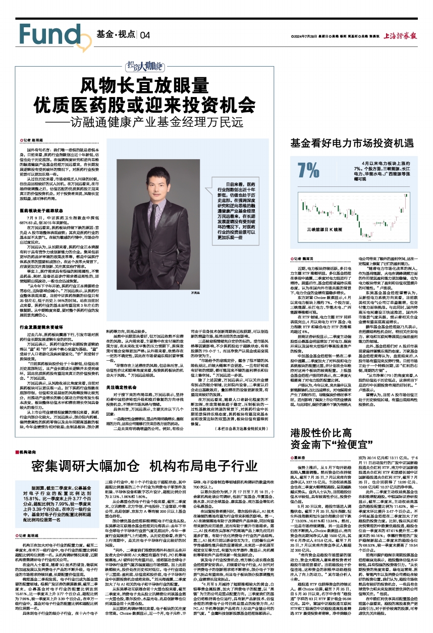“另外,二季度我们观察到海外科技巨头在开发者大会中表明AI大模型有望在手机、PC机等端侧落地,AI硬件时代有望开启,或将驱动全球电子半导体行业景气复苏强度超出市场预期。加上此前跌幅较大,股价处在历史相对低位。电子行业或处于三重底:盈利底、估值底和股价底,电子半导体行业中长期投资机会或将来临。”刘元海透露,二季度加大了与AI相关的电子和半导体行业的配置。