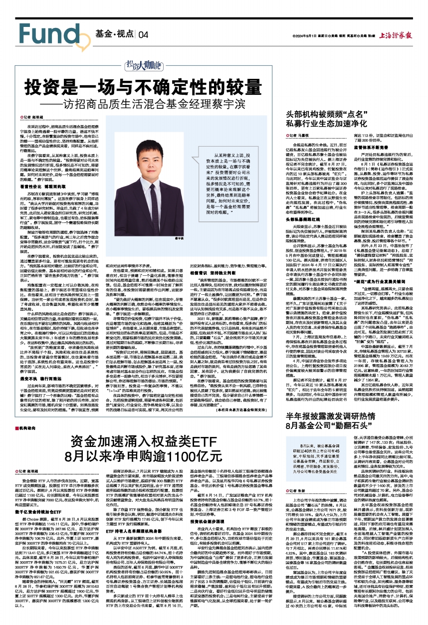 资金加速涌入权益类ETF 8月以来净申购逾1100亿元