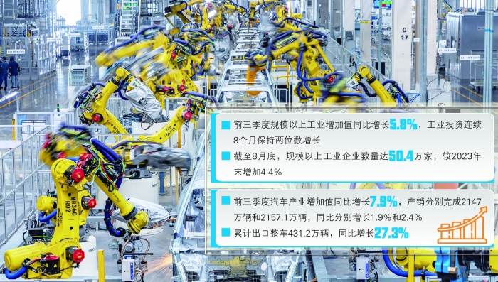 “前三季度规模以上工业增加值同比增长5.8%、工业投资连续8个月保持两位数增长、规上工业专精特新‘小巨人’企业营业收入利润率达7.5%……”在10月23日国新办举行的新闻发布会上,工业和信息化部新闻发言人、总工程师赵志国公布了工业经济的成绩单。