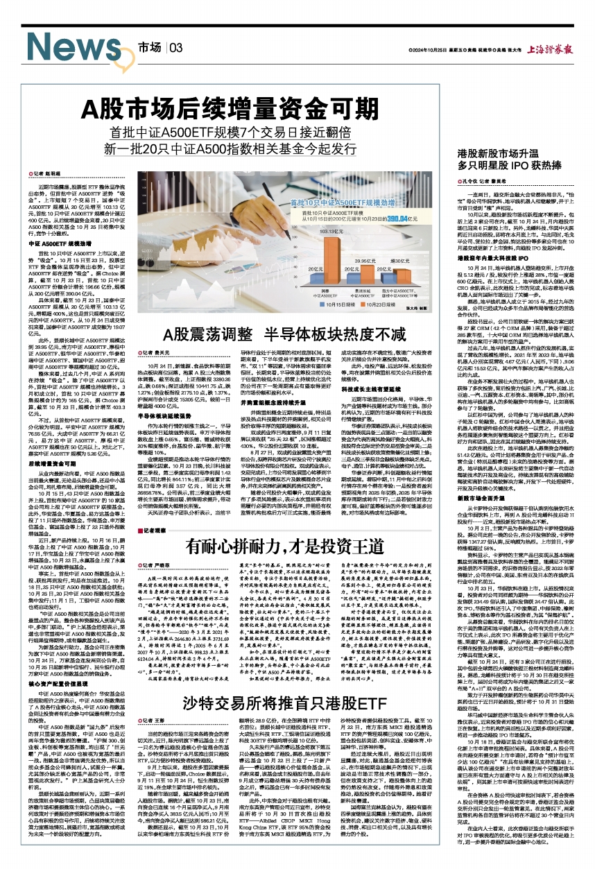 华泰证券判断,科创超额收益行情短期或延续。着眼中期,11月中旬之后科创行情存在两个潜在考验:一是投资者盈利预期视角向2025年切换,2025年半导体库存周期或转向下行;二是若彼时财政力度可观,偏好蓝筹板块的外资可能逐步回流,对市场风格或有边际影响。