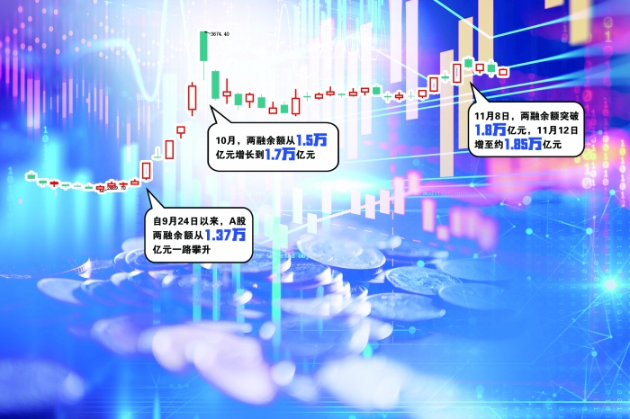 自9月24日以来,A股两融余额从1.37万亿元一路攀升。10月,两融余额从1.5万亿元增长到1.7万亿元。11月8日,两融余额突破1.8万亿元,11月12日增至约1.85万亿元。11月4日至12日,两融余额连续7个交易日持续增加,合计增加1451.79亿元。