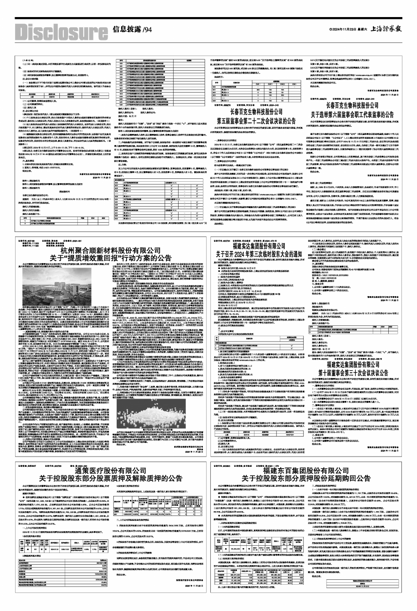 上述议案均已经公司第十届董事会第二十九次及第十届董事会第三十次会议审议通过,内容详见公司于2024年10月31日及2024年11月23日刊登在中国证券报、证券日报、上海证券报、证券时报及上海证券交易所网站www.sse.com.cn上的公告。