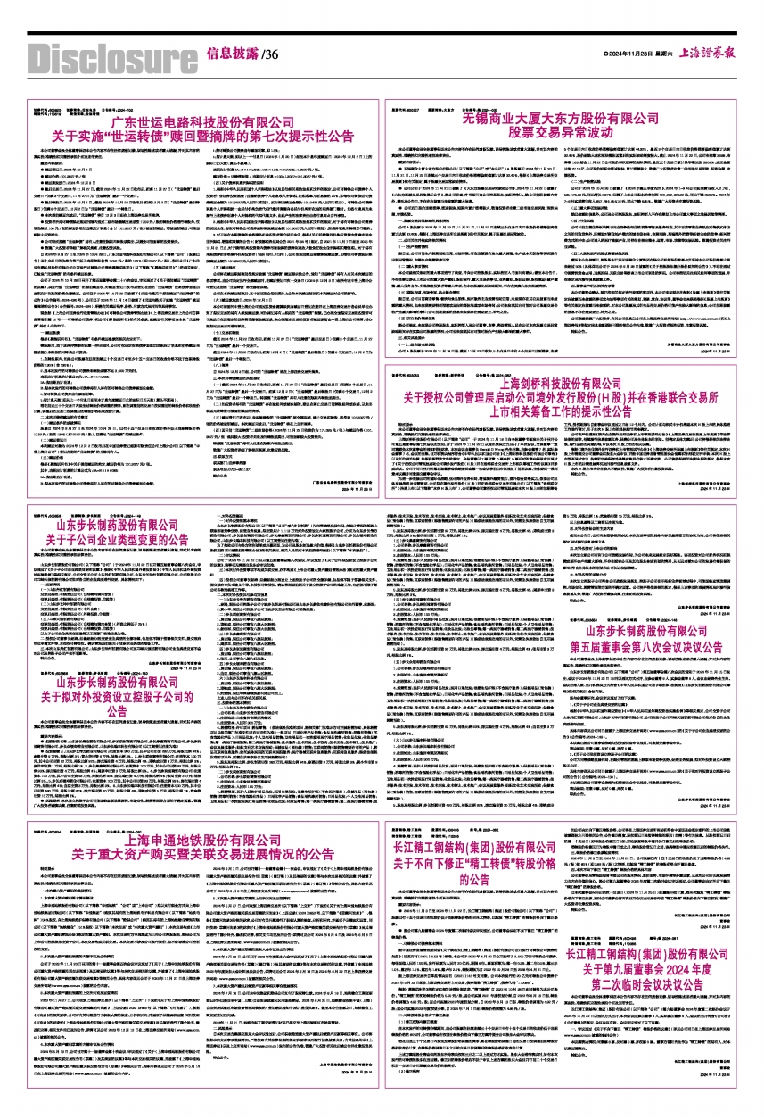 ● 最后转股日:2024年12月2日。截至2024年11月22日收市后,距离12月2日(“世运转债”最后转股日)仅剩6个交易日,12月2日为“世运转债”最后一个转股日。