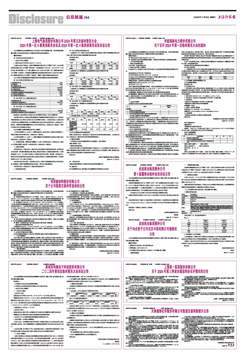 上海电气集团股份有限公司2024年第五次临时股东大会、