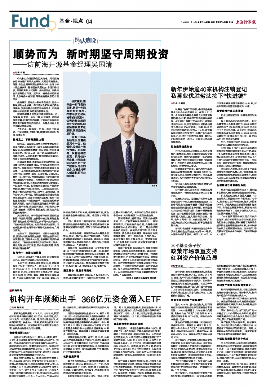 十年精心打磨,吴国清在众多公募基金经理中,自成一套打法,形成了独特风格。“将传统周期股和周期成长股相结合,能够全面、准确地把握市场大势和投资机会。顺势而为,方能提升投资收益。”吴国清说。