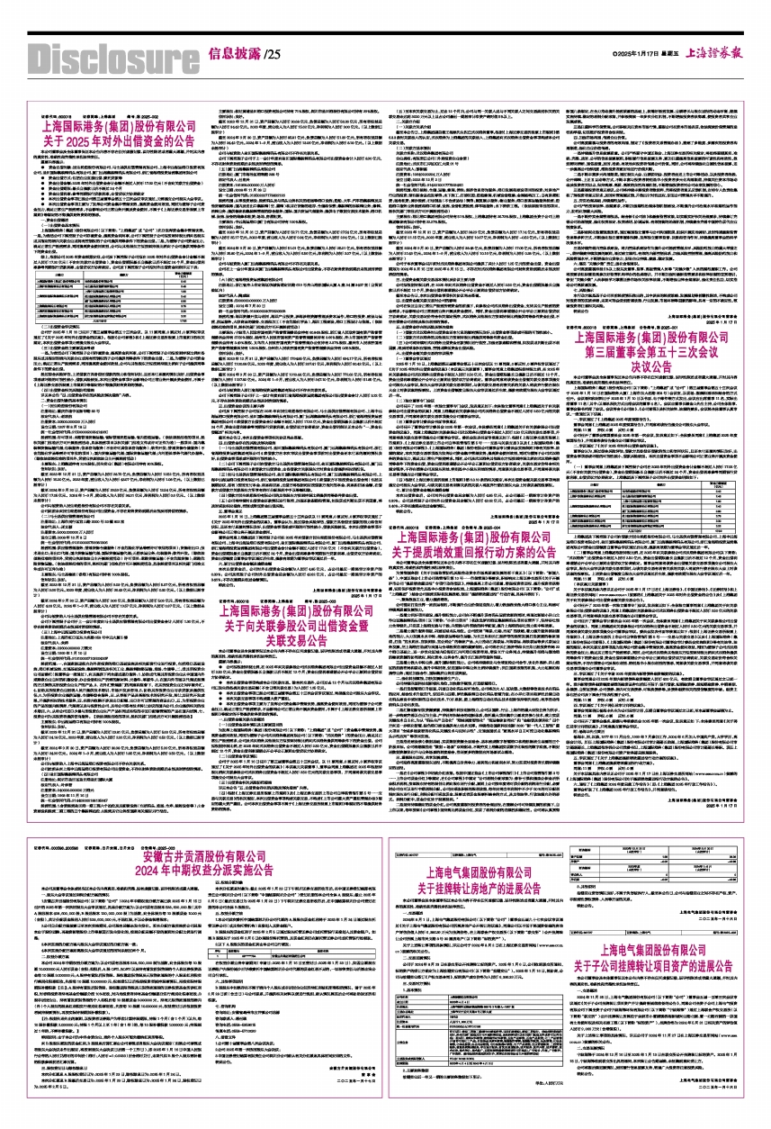 关于本议案具体内容详见公司于2025年1月17日在《上海证券报》、《中国证券报》、《证券时报》和上海证券交易所网站(www.sse.com.cn)披露的《上港集团关于2025年对外出借资金的公告》及《上港集团关于向关联参股公司出借资金暨关联交易公告》。