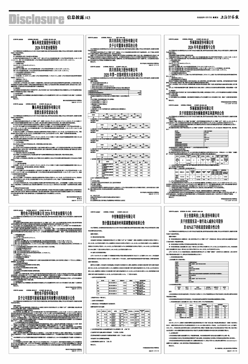● 公司于同日披露《2024年年度业绩预告》,经财务部门初步测算,预计2024年年度实现归属于上市公司股东的净利润-2,600万元至-3,100万元,预计2024年年度实现归属于上市公司股东的扣除非经常性损益的净利润-3,300万元至-3,800万元。敬请广大投资者注意经营业绩风险。