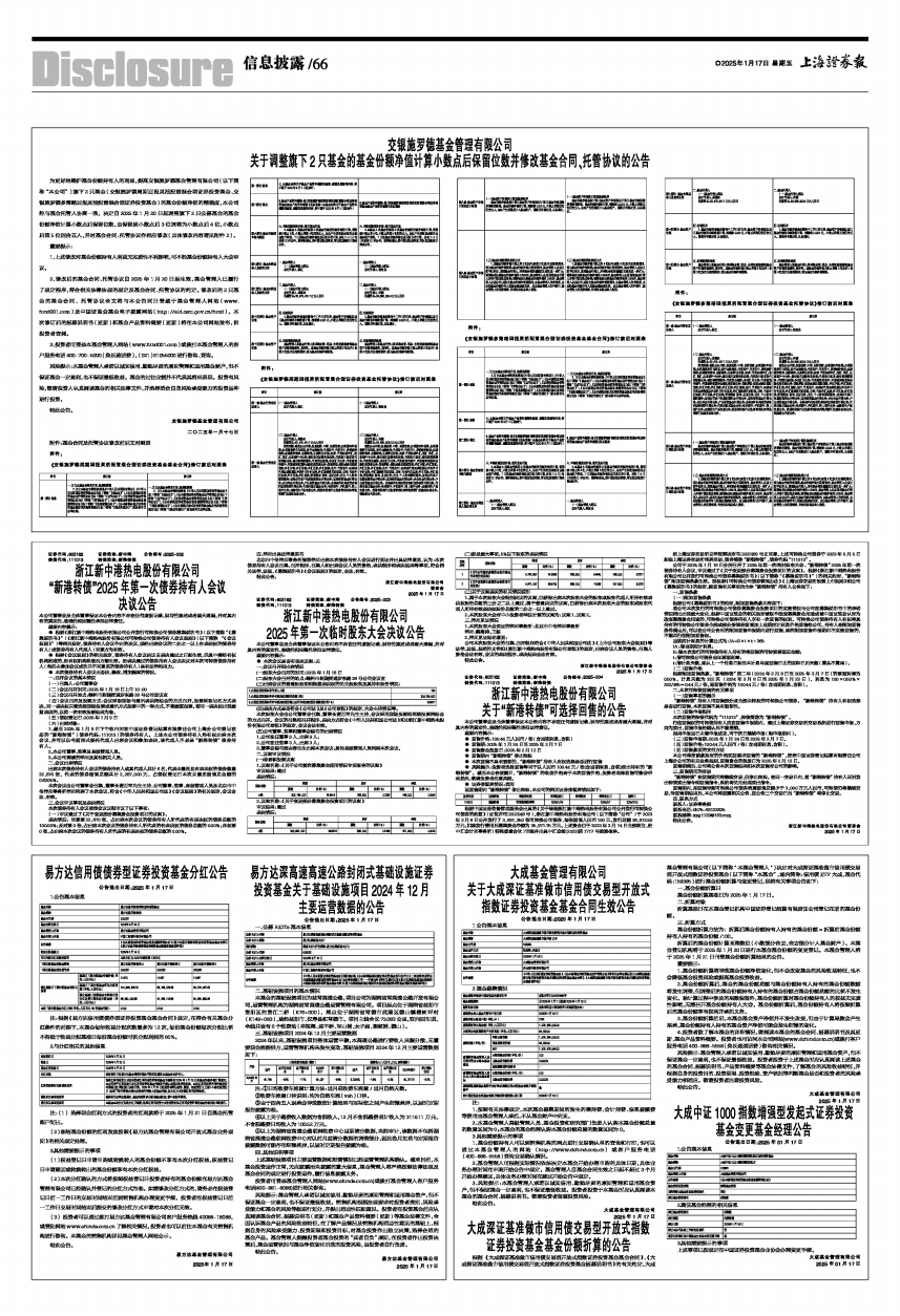 为更好地维护基金份额持有人的利益,提高交银施罗德基金管理有限公司(以下简称“本公司”)旗下2只基金(交银施罗德周期回报灵活配置混合型证券投资基金、交银施罗德多策略回报灵活配置混合型证券投资基金)的基金份额净值的精确度,本公司经与基金托管人协商一致,决定自2025年1月20日起调整旗下2只公募基金的基金份额净值计算小数点后保留位数,由保留到小数点后3位调整为小数点后4位,小数点后第5位四舍五入,并对基金合同、托管协议作相应修改(具体修改内容请见附件2)。