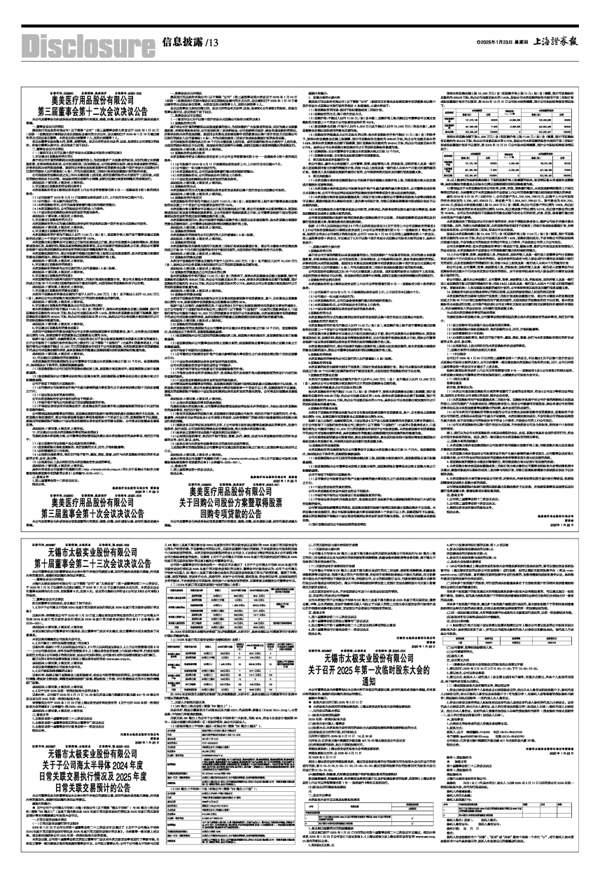 奥美医疗用品股份有限公司(以下简称“公司”)第三届监事会第六次会议于2025年1月20日(星期一)在奥美医疗总部大楼会议室以现场结合通讯的方式召开。会议通知已于2025年1月16日通过邮件的方式送达各位监事。本次会议应出席监事3人,实际出席监事3人。