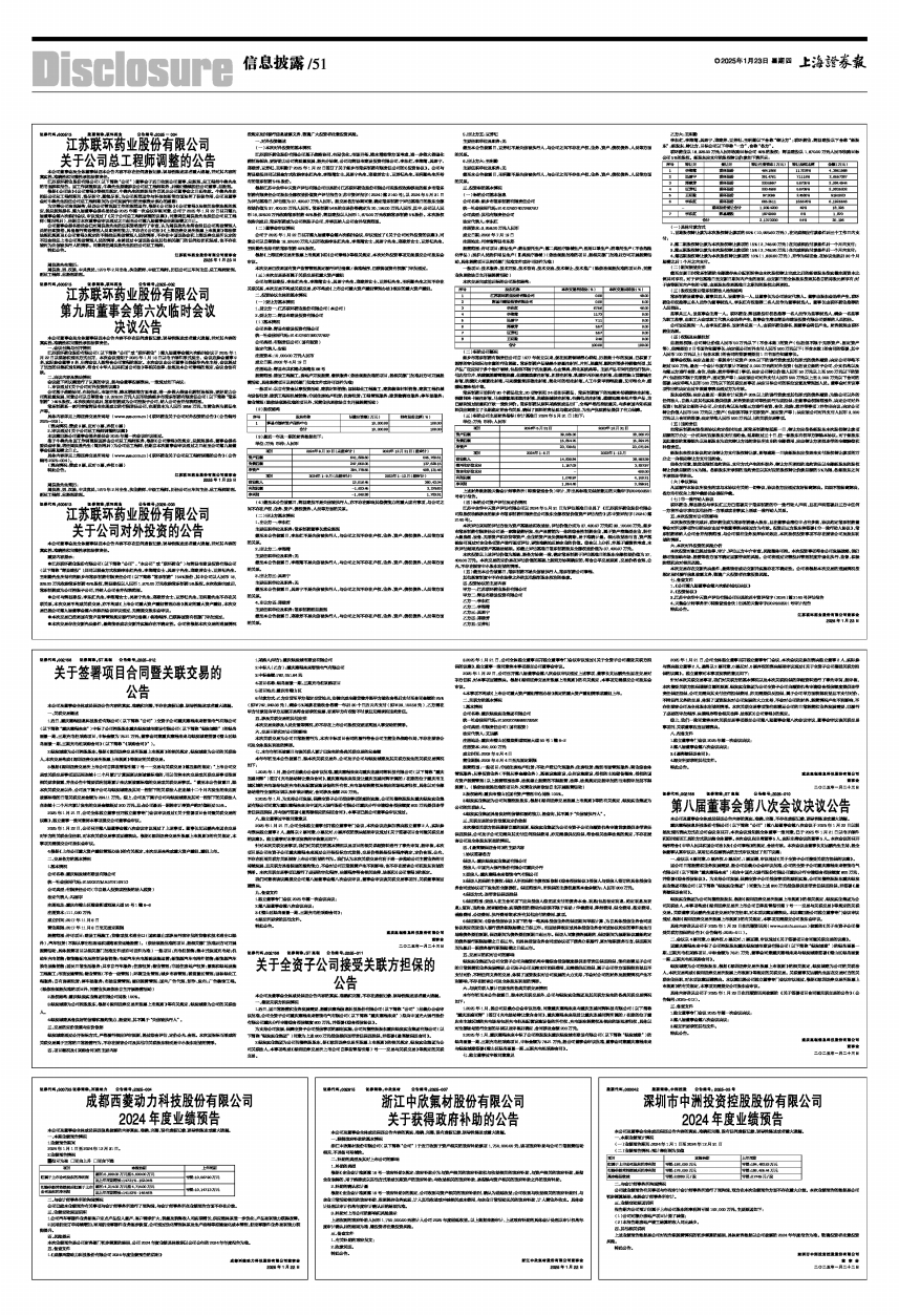 具体内容详见上海证券交易所网站(www.sse.com.cn)《联环药业关于公司对外投资的公告》(公告编号2025-003)。