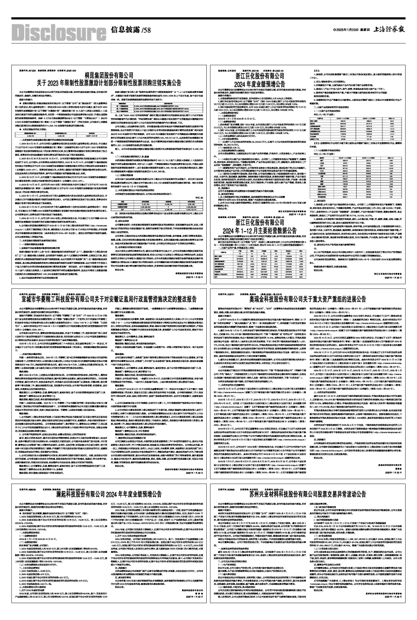2、浙江巨化股份有限公司(以下简称“公司”)预计2024年度归属于上市公司股东的净利润为18.7亿元到21.0亿元,与上年同期相比增加9.26亿元到11.56亿元,同比增长98%到123%。