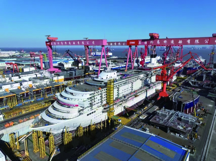 外高桥和吴淞口,是长江入海处两个相距20余公里的港口。对我国邮轮产业而言,这两个地方意义非凡——一头坐落着目前我国建造大型邮轮的唯一一座船厂——中国船舶集团有限公司旗下上海外高桥造船有限公司(下称“外高桥造船”),另一头有亚洲最大的邮轮母港——上海吴淞口国际邮轮港。