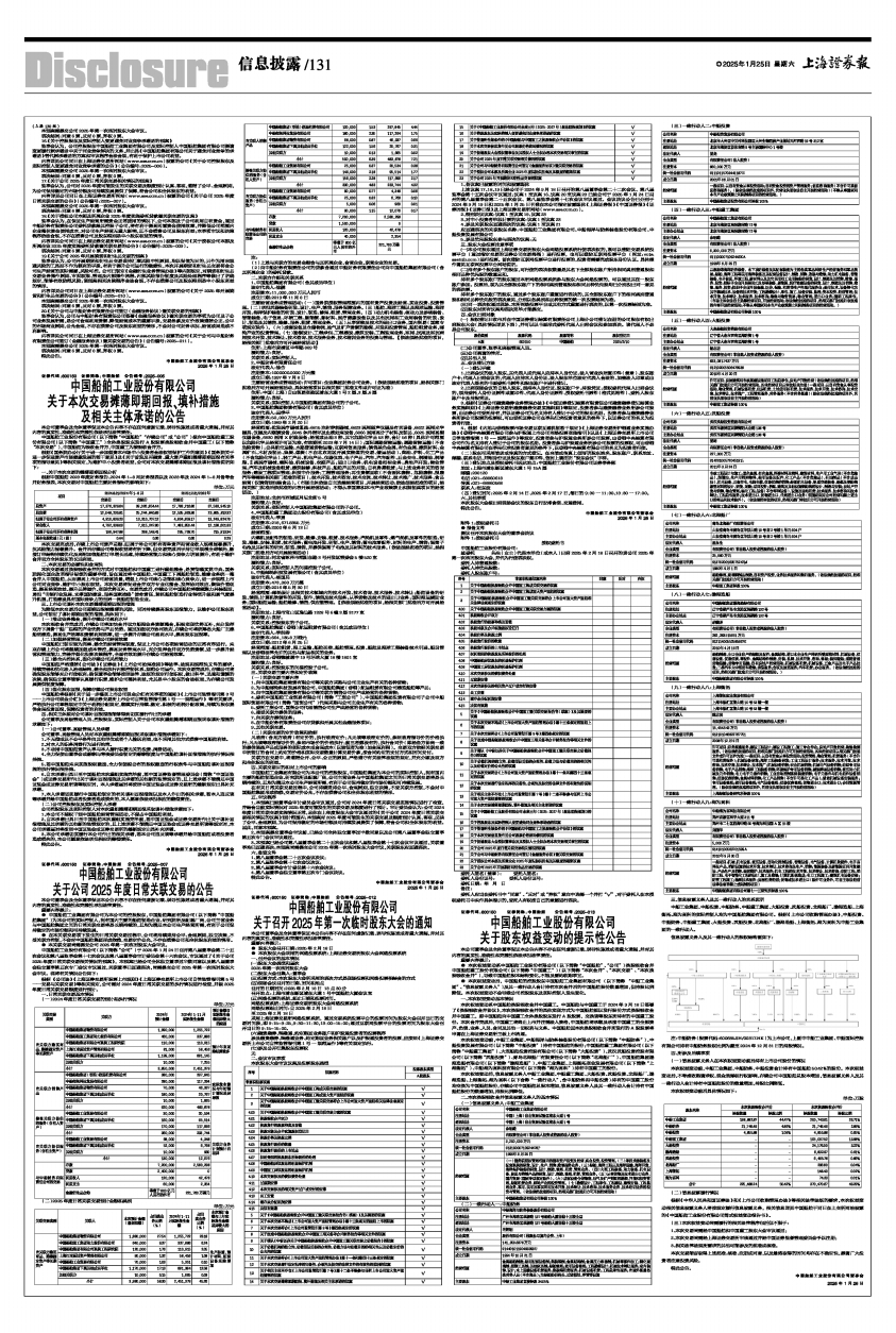 证券代码:600150 证券简称:中国船舶 公告编号:2025-013