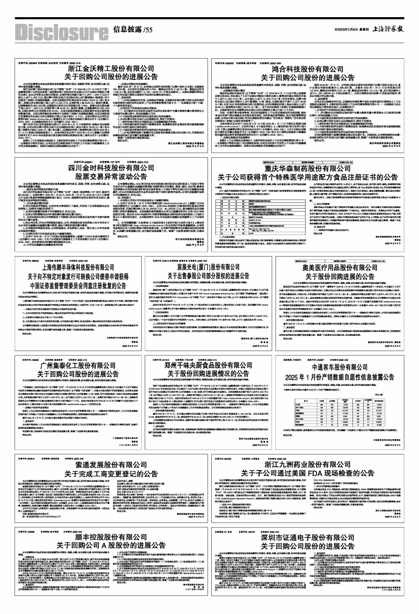 截至2025年1月31日,公司通过股份回购专用证券账户以集中竞价方式累计回购公司股份2,170,000股,回购总金额为9,706,186元(不含交易费用),回购股份占公司目前总股本的0.35%,最高成交价为5.65元/股,最低成交价为3.78元/股。本次回购符合既定回购方案及相关法律法规要求。