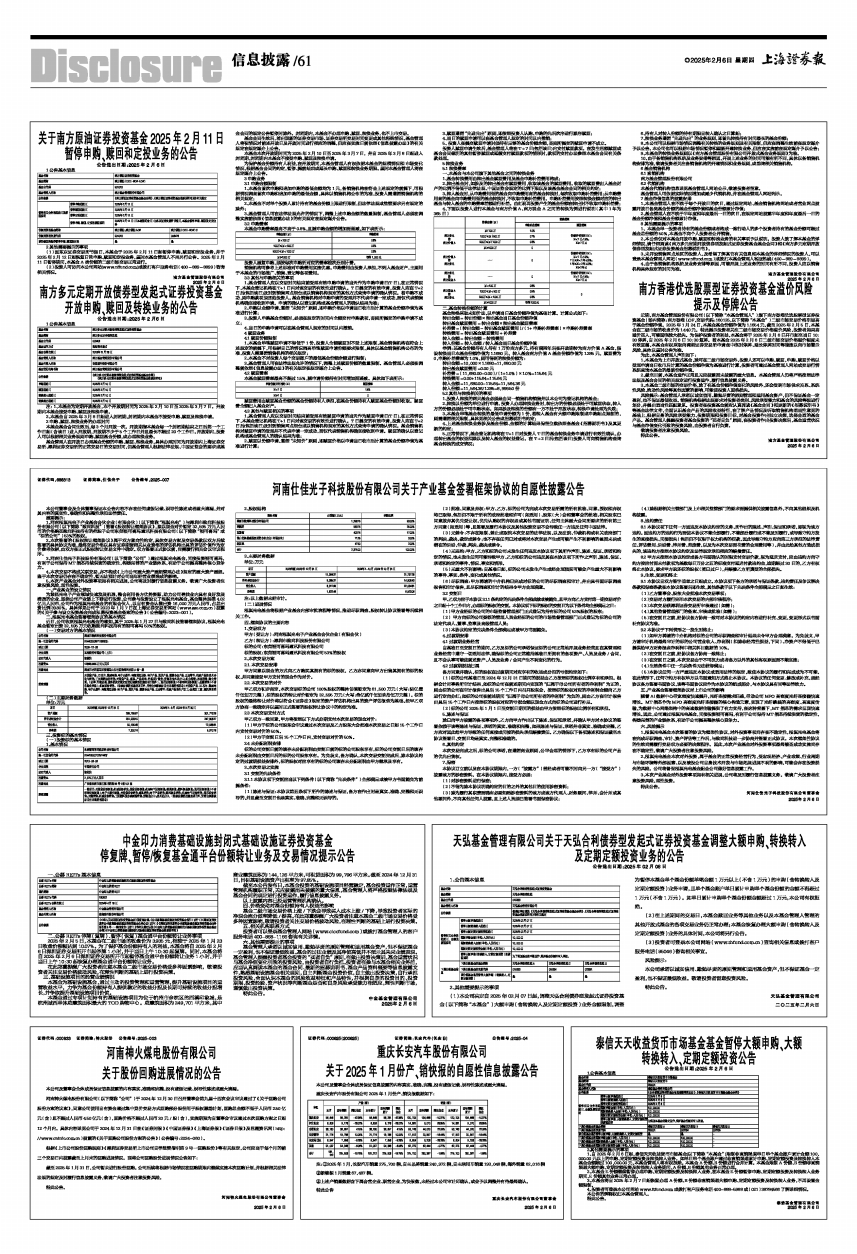 (1)本公司决定自2025年02月07日起,调整天弘合利债券型发起式证券投资基金(以下简称“本基金”)大额申购(含转换转入及定期定额投资)业务金额限制,调整为暂停本基金单个基金份额单笔金额1万元以上(不含1万元)的申购(含转换转入及定期定额投资)业务申请,且单个基金账户单日累计申购单个基金份额的金额不得超过1万元(不含1万元)。如单日累计申购单个基金份额金额超过1万元,本公司有权拒绝。