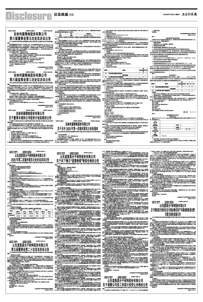 吉林利源精制股份有限公司(以下简称“利源股份”或“公司”)第六届董事会第五次会议于2025年2月7日召开,审议通过了《关于提请召开2025年第一次临时股东大会的议案》,决定召开公司2025年第一次临时股东大会。