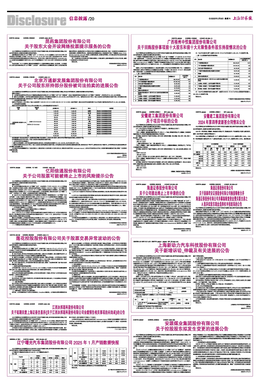 辽宁曙光汽车集团股份有限公司2025年1月产销数据快报