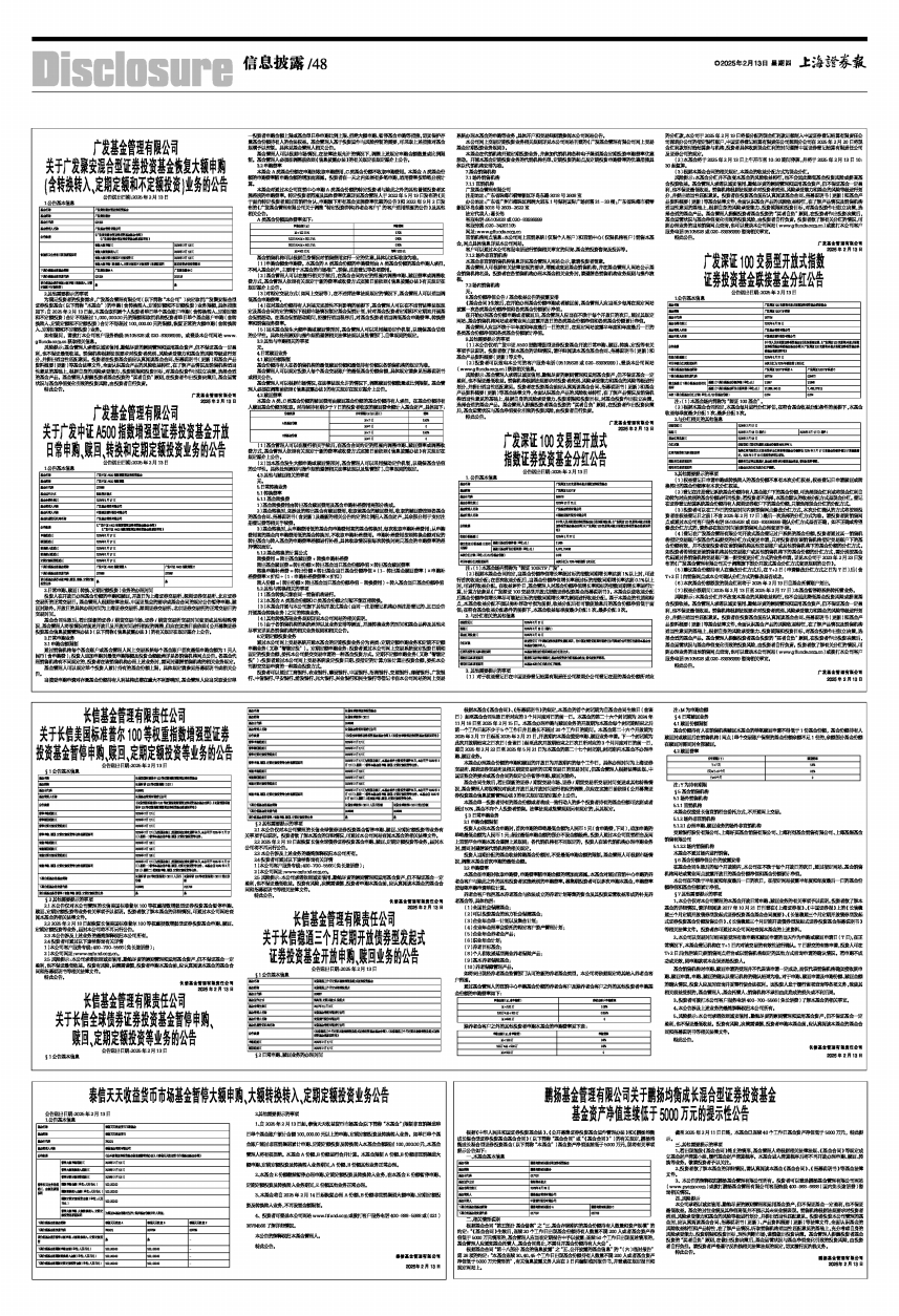为满足投资者的投资需求,广发基金管理有限公司(以下简称“本公司”)决定取消广发聚安混合型证券投资基金(以下简称“本基金”)的申购(含转换转入、定期定额和不定额投资)业务限额,具体措施如下:自2025年2月13日起,本基金取消原个人投资者单日单个基金账户申购(含转换转入、定期定额和不定额投资)合计不得超过1,000,000.00元的限额和取消机构投资者单日单个基金账户申购(含转换转入、定期定额和不定额投资)合计不得超过100,000.00元的限额,恢复正常的大额申购(含转换转入、定期定额和不定额投资)业务。