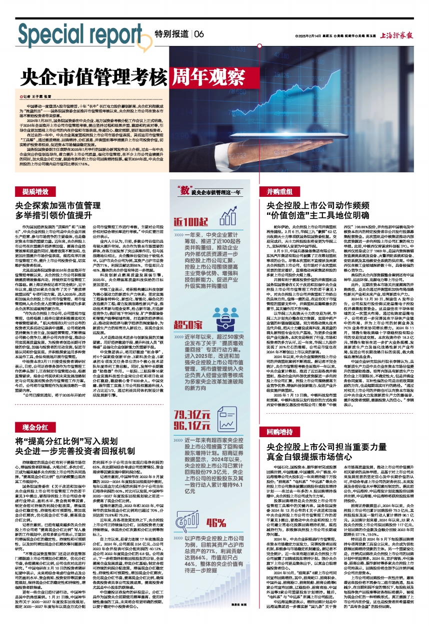 尤其是国务院国资委2024年全面推开市值管理考核以来,央企控股上市公司积极围绕提质增效修炼内功,持续夯实市值管理工作基础。据上海证券报记者不完全统计,近半年以来,超过50家央企发布了关于“提质增效重回报”专项行动方案。进入2025年,改进和加强央企控股上市公司市值管理,将市值管理纳入央企负责人经营业绩考核成为多家央企改革加速破局的新方向。