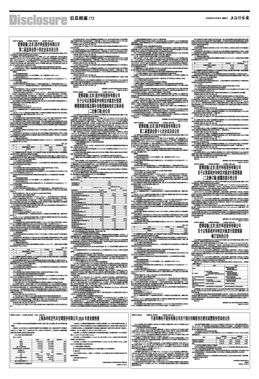 上海加冷松芝汽车空调股份有限公司2024年度业绩快报
