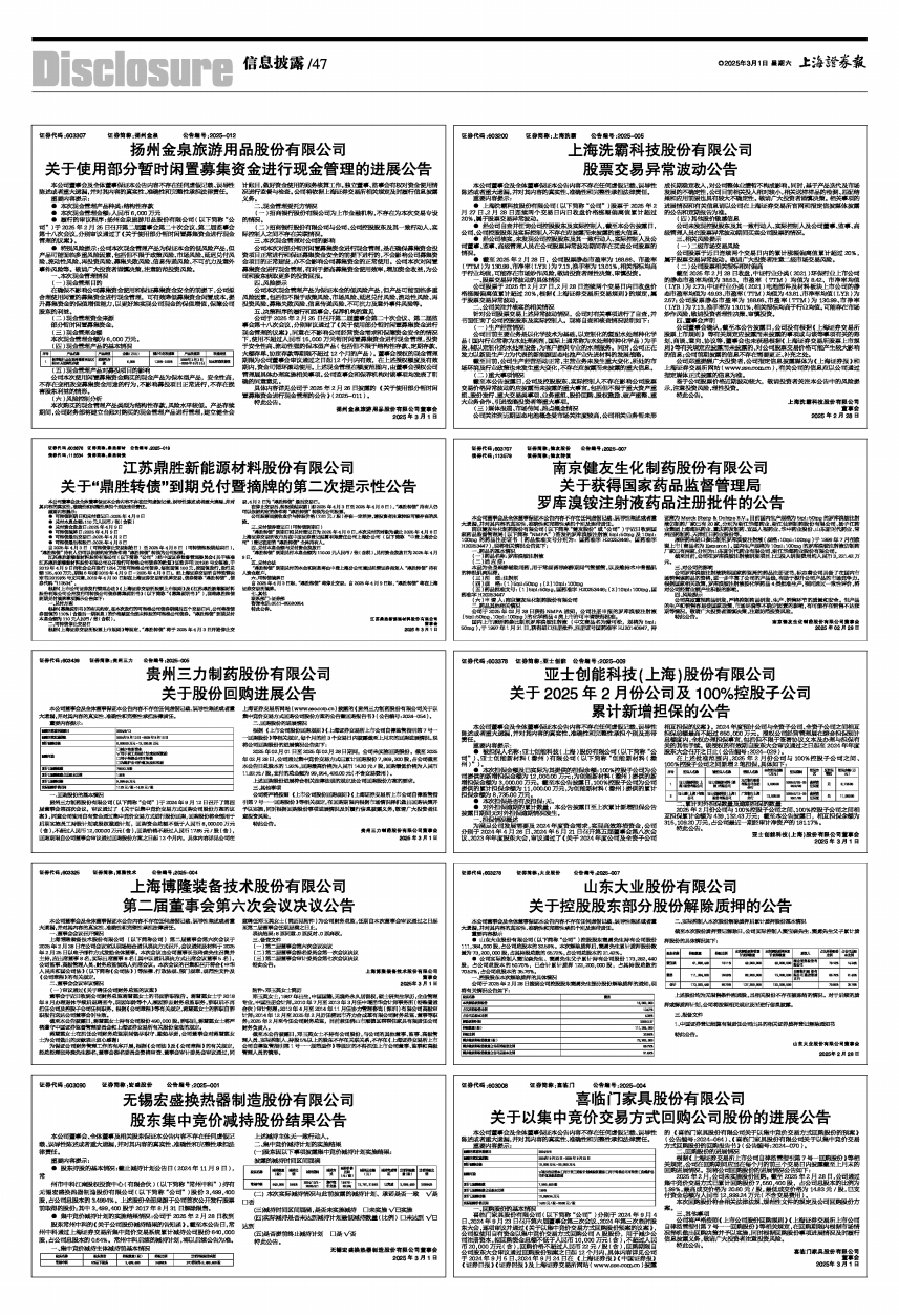 2025年2月,公司未实施股份回购。截至2025年2月28日,公司通过集中竞价交易方式已累计回购股份7,550,400股,占公司总股本的比例为1.99%,最高成交价格为20.60元/股,最低成交价格为14.83元/股,已支付资金总额为人民币12,999.24万元(不含交易费用)。