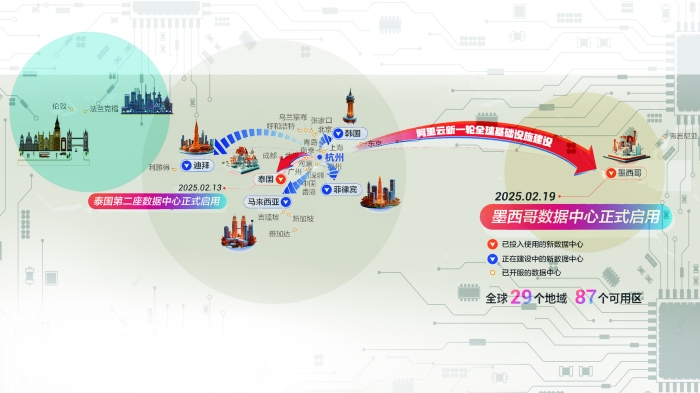 在投资侧,去年5月,阿里云宣布新一轮全球基础设施扩建计划,计划在泰国、墨西哥、马来西亚、菲律宾和韩国投资新建数据中心,并将继续在当地市场加大生态和服务体系建设投入。截至记者发稿时,泰国第二座数据中心以及墨西哥数据中心均已正式启用。