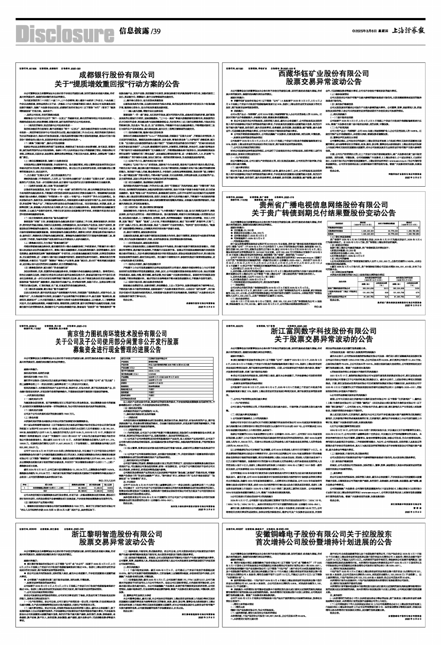 公司股票于2025年3月3日、3月4日、3月5日连续三个交易日内收盘价格涨幅偏离值累计达20%,敬请广大投资者注意二级市场交易风险,理性决策,审慎投资。