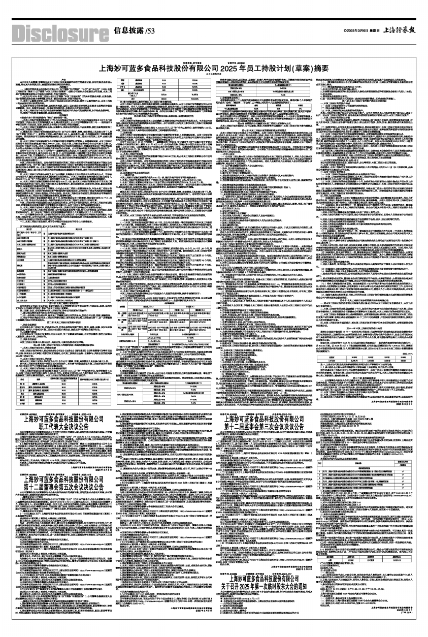 上海妙可蓝多食品科技股份有限公司2025年员工持股计划(草案)摘要