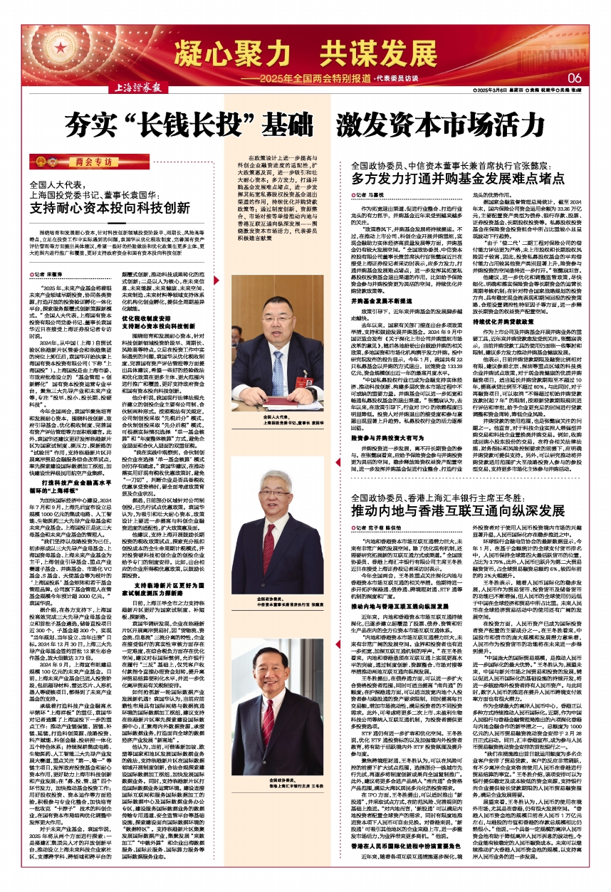今年全国两会,王冬胜重点关注深化内地与香港资本市场互联互通的相关举措。他期待进一步开拓沪深港通、债券通、跨境理财通、ETF通等机制的深度和广度。