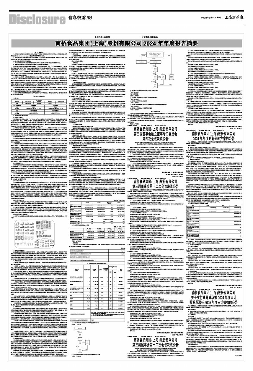 四、《2024年度利润分配预案》(详见公司披露于信息披露媒体《中国证券报》、《上海证券报》、《证券时报》、《证券日报》和上海证券交易所网站(http://www.sse.com.cn)的“临 2025-015南侨食品集团(上海)股份有限公司2024年年度利润分配方案的公告”)