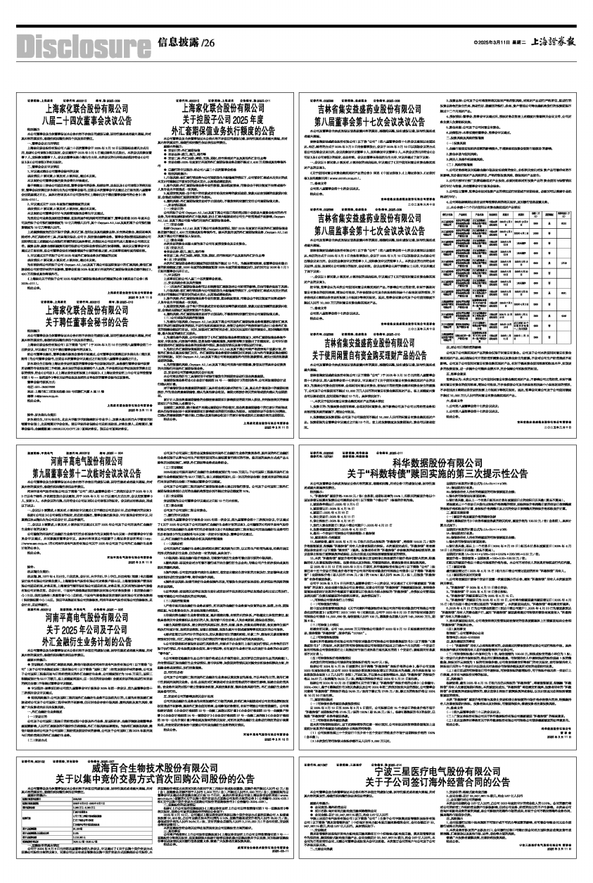 《上海家化关于控股子公司2025年度外汇套期保值业务执行额度的公告》请见当日公告(临2025-011)。